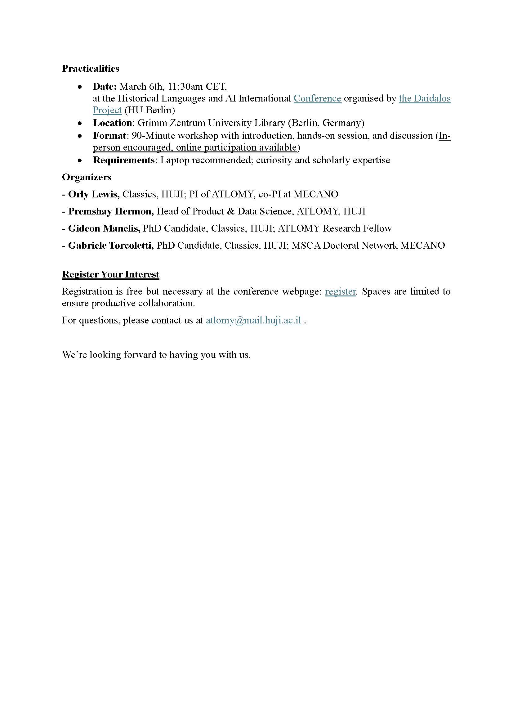 האגודה לקידום הלימודים הקלאסיים בישראל נוסדה בשנת 1971 וכיום חברים בה עשרות חוקרות וחוקרים, תלמידות ותלמידי מחקר, וציבור גדול של אוהבי התרבות הקלאסית. החברות באגודה פתוחה לקהל הרחב. קראו עוד